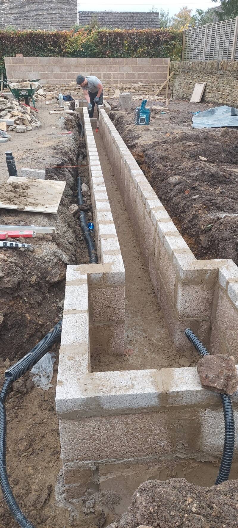 A new extension to the house to be re landscaped, using 20mm porcelain paving ,with a retaining wall with steps up to a newly turfed lawn.