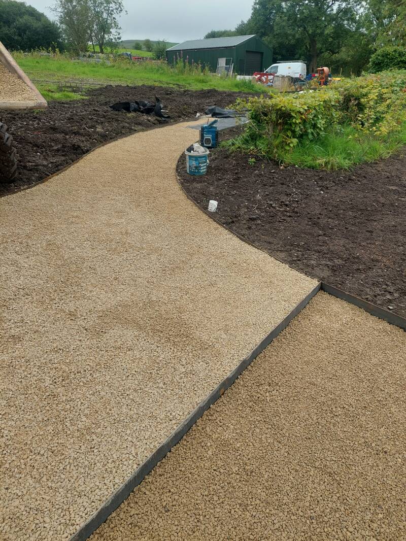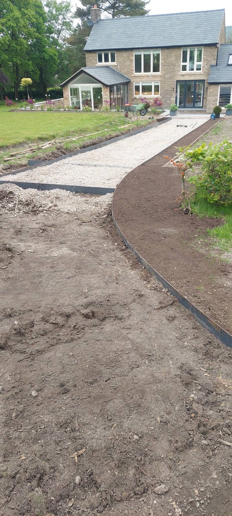 A new driveway of Nidagravel stabilisation panels filled with crushed limestone, we also created formal planting beds edged with porcelain pavers to give some interest and break up the large gravelled area.