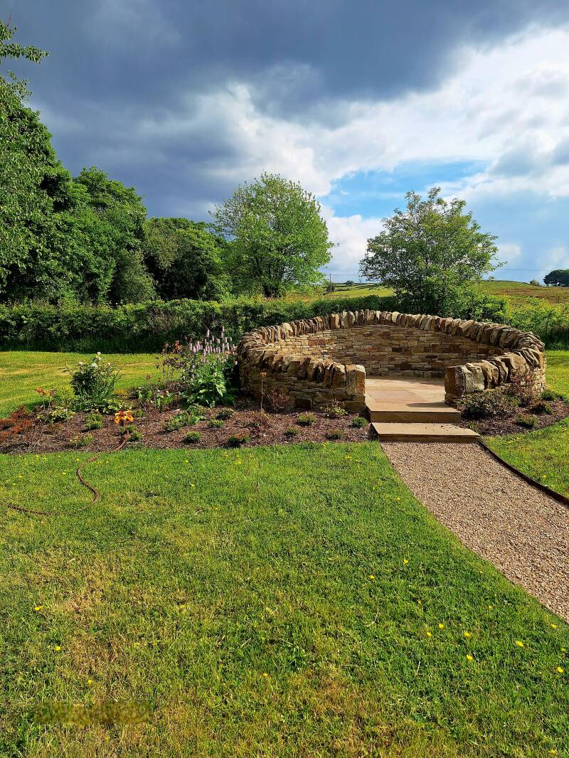 Porcelain patio and retaining wall in Wilmslow . June 2024
